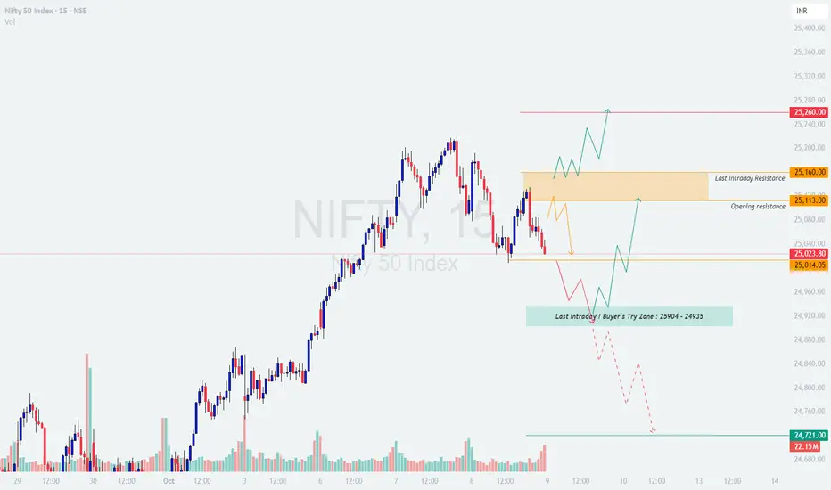 If Nifty opens around or above the 25,150โ25,180 zone, it will enter near the last intraday resistance area.