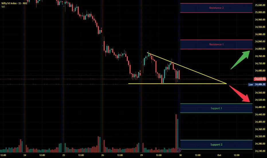 Index has resistance near 24800 – 24850 range and if index crosses and sustains above this level then may reach near 25000 – 25050 range.