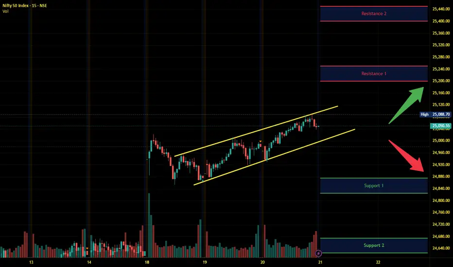 Index has resistance near 25200 – 25250 range and if index crosses and sustains above this level then may reach near 25400 – 25450 range.