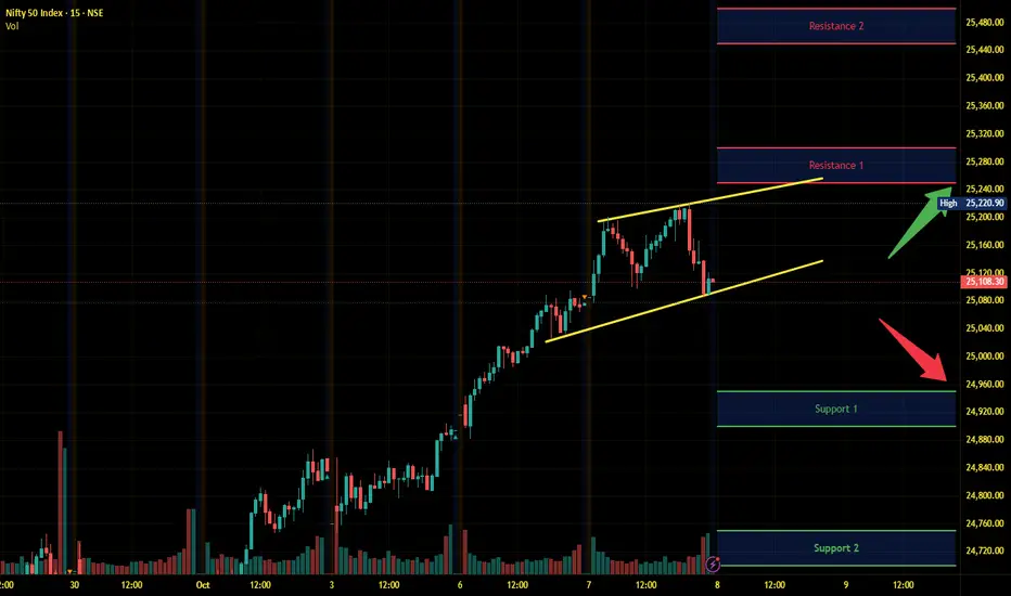 Index has resistance near 25250 – 25300 range and if index crosses and sustains above this level then may reach near 25450 – 25500 range.