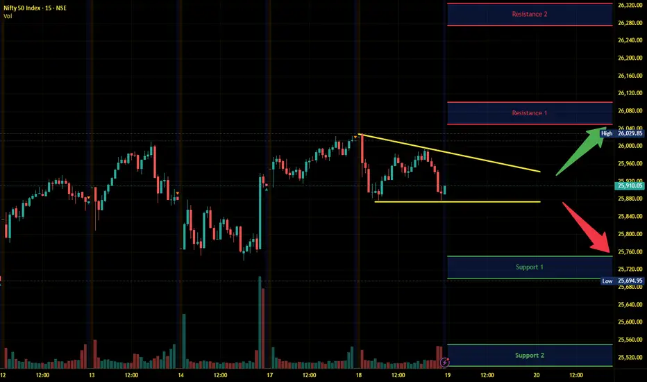 Index has resistance near 26050 – 26100 range and if index crosses and sustains above this level then may reach near 26275 – 26325 range.