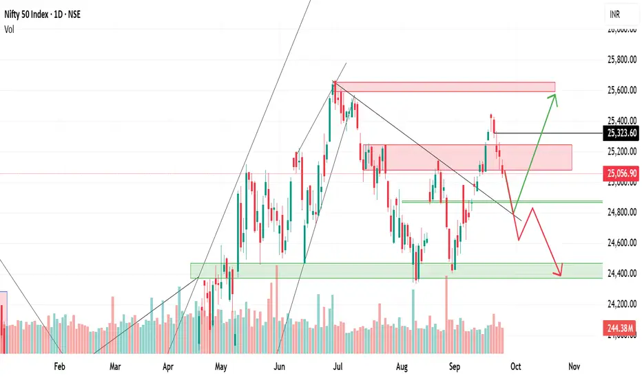 If the 24,900–24,800 zone is broken on the downside, then the structure opens up for a deeper correction. In such a case, levels of 24,500–24,300 become very much possible in the coming sessions.