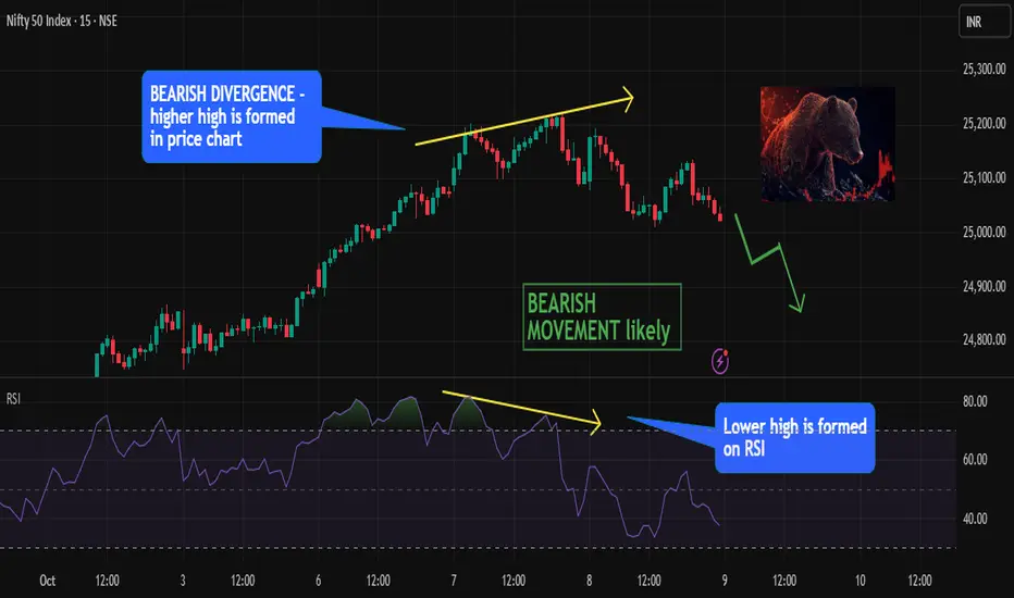 Nifty 50 (INDEX:NIFTY) is flashing a bearish divergence signal on the daily chart — a classic early warning of potential trend exhaustion.