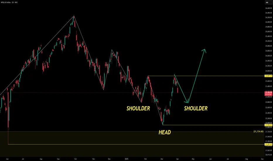 Bullish Breakout: There’s also an upward arrow on the chart suggesting a potential bullish breakout above the right shoulder, targeting a level of 23,807.30 INR. This would indicate a rejection of the bearish setup, leading to a trend reversal to the upside.