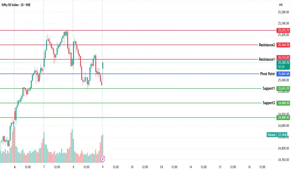 If the candle stays above the pivot point, it is considered a bullish bias; if it remains below, it indicates a bearish bias. Price may reverse near Resistance 1 or Support 1. If it moves further, the next potential reversal zone is near Resistance 2 or Support 2. If these levels are also broken, we can expect the trend.