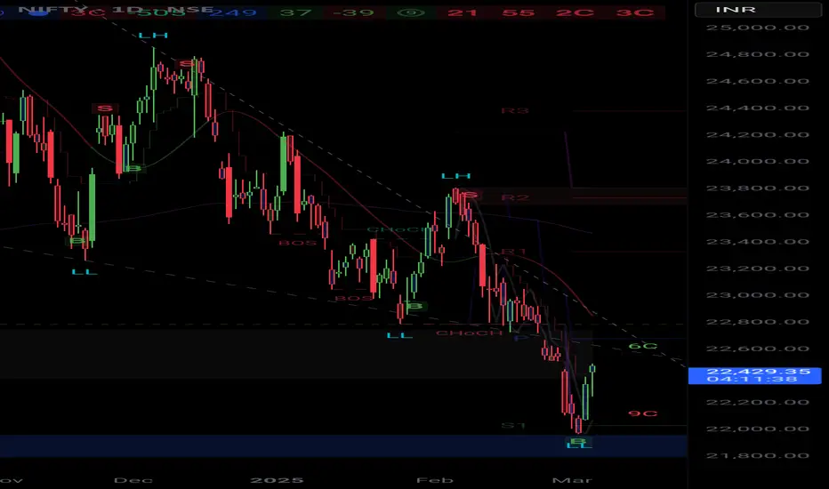 As of March 6, 2025, the Nifty 50 index is experiencing fluctuations influenced by various market factors. In recent sessions, the index has faced declines, primarily due to concerns over U.S. trade policies and their potential impact on global markets.