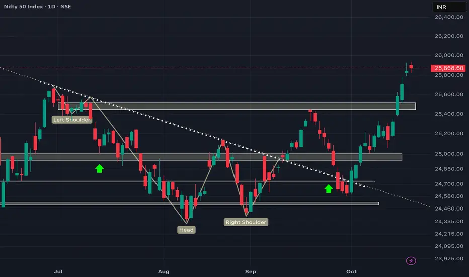 As we can see NIFTY has finally breached its previous swing but is showing signs of rejection around 25900-26000 levels as it is now trading at important GAP which has been filled and cam act as a resistance as long as NIFTY doesn't sustains itself above 25900-26000 psychological level every rise can be sold as it could be a possible trap leading to sharp fall. Moreover one who had been rallying this uptrend from our zones should start booking partially and wait for signs of reversal or sustainment above 26000 level for confirmation so plan your trades accordingly and keep watching everyone.