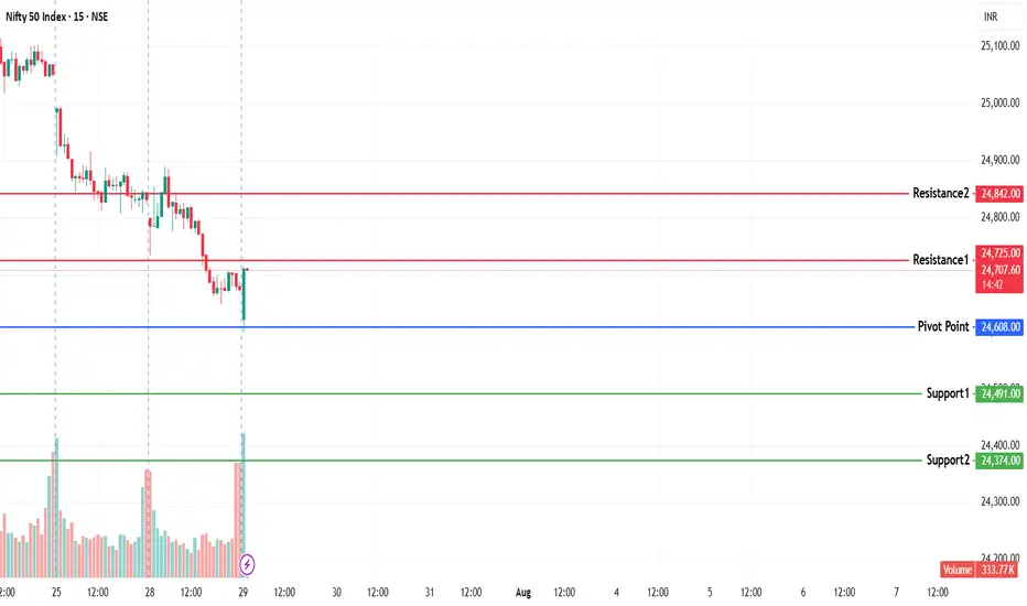 If the candle stays above the pivot point, it is considered a bullish bias; if it remains below, it indicates a bearish bias. Price may reverse near Resistance 1 or Support 1. If it moves further, the next potential reversal zone is near Resistance 2 or Support 2. If these levels are also broken, we can expect the trend.