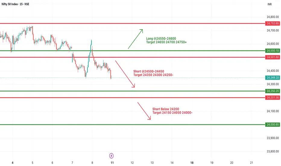On the downside, weakness could develop if the index trades below 24,500–24,450, which may lead to declines toward 24,350, 24,300, and 24,250-. A breakdown below 24,200 could further extend the fall toward 24,150, 24,050, and 24,000-. The 24,500 zone will act as a pivot, and traders should watch for price action confirmation before entering positions, keeping strict stop-losses in place and booking profits at targets.