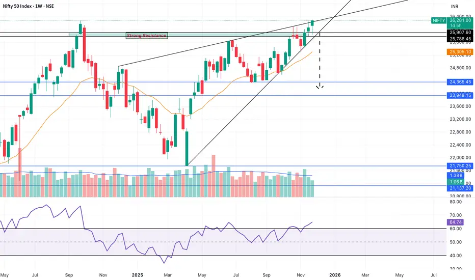 Rising Wedge pattern in Nifty (SL daily candle close)