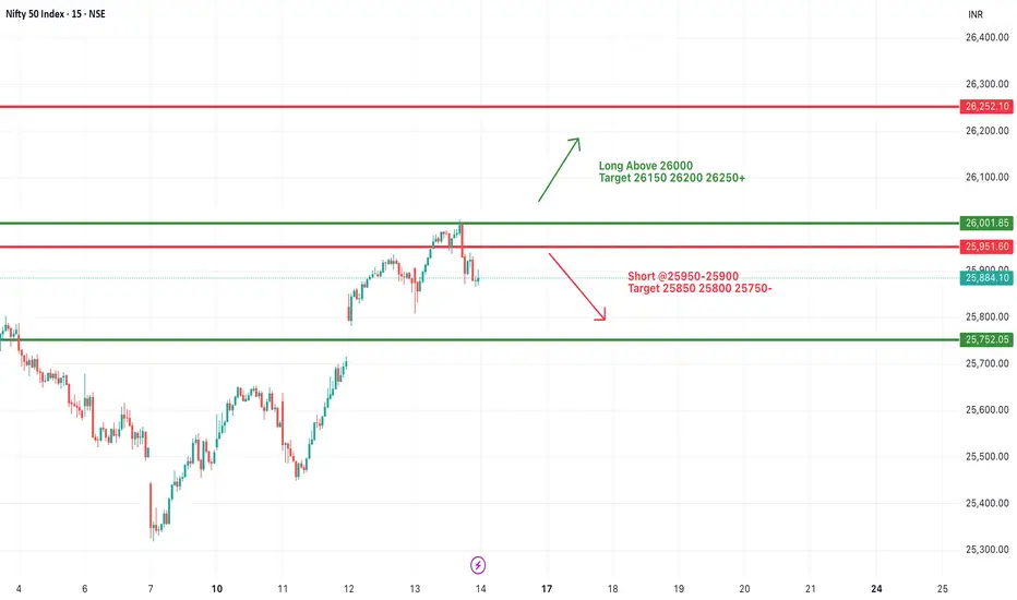 If Nifty sustains above 26,000, upside strength can continue toward 26,150, 26,200, and 26,250+. A breakout above 26,000 will act as the primary confirmation for long positions, indicating fresh buyer momentum.