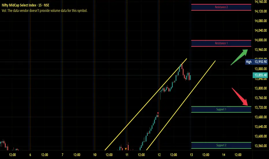 Midnifty has immediate support near 13725 – 13700 range and if this support is broken then index may tank near 13575 – 13550 range.