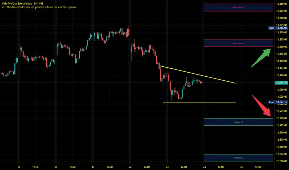 Midnifty has immediate support near 12950 – 12900 range and if this support is broken then index may tank near 12825 – 12800 range.