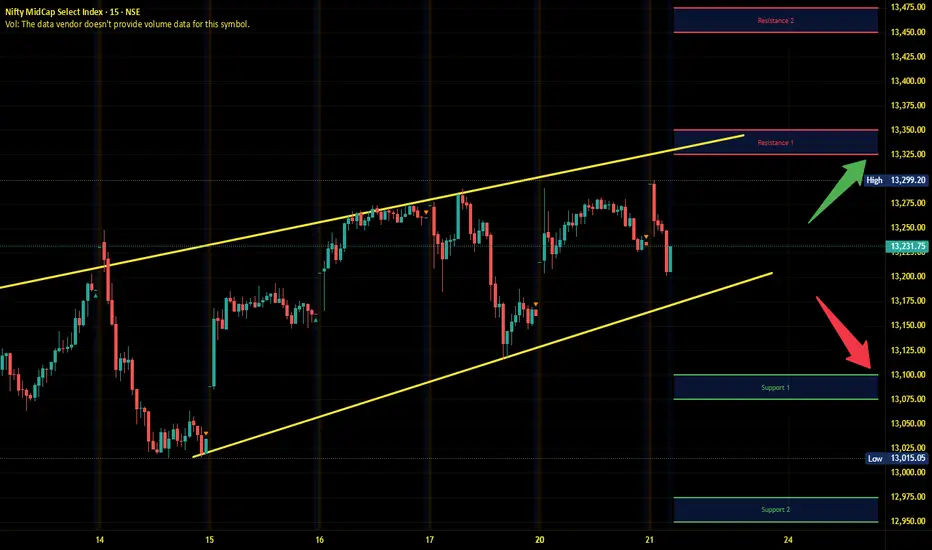 Midnifty has immediate support near 13100 – 13075 range and if this support is broken then index may tank near 12975 – 12950 range.