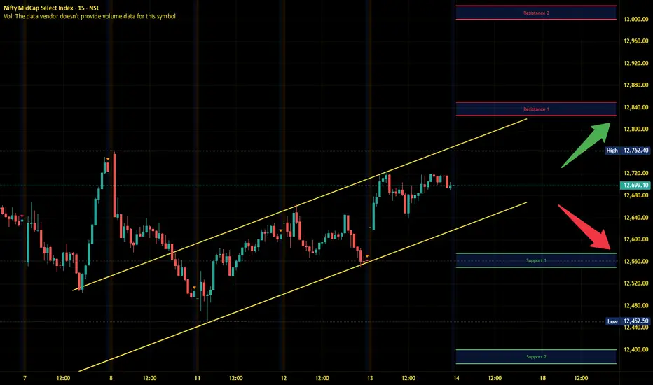 Midnifty has immediate support near 12575 – 12550 range and if this support is broken then index may tank near 12400 – 12375 range.