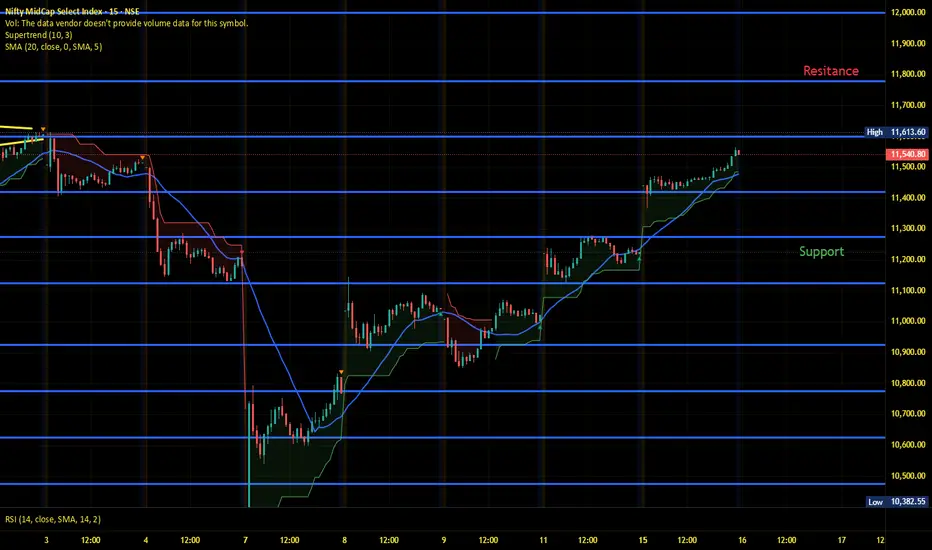 Index has immediate support near 11400 – 11350 range and if this support is broken then index may tank near 11250 – 11200 range.