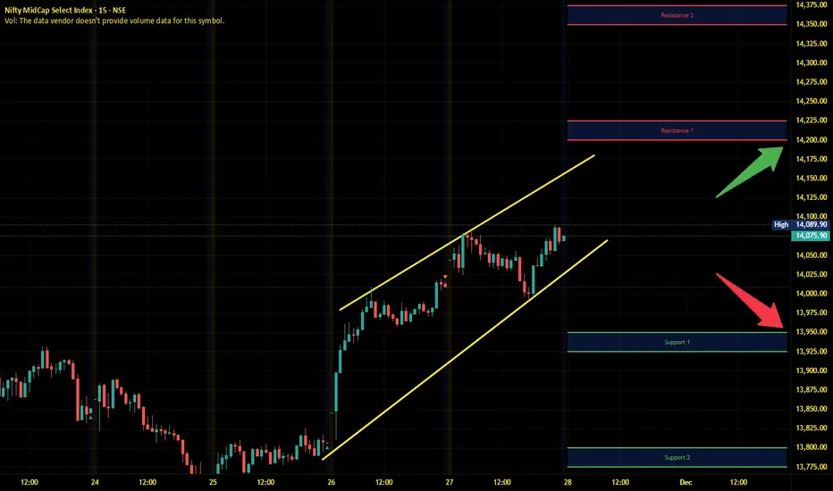 Index has immediate resistance near 14200 – 14250 range and if index crosses and sustains above this level then may reach 14350 – 14375 range.