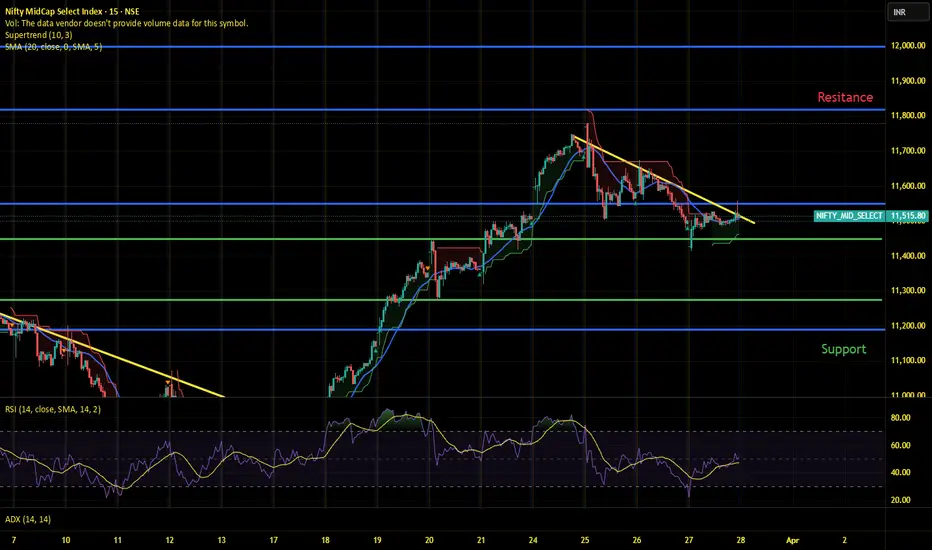 Index has immediate resistance near 11650 – 11700 range and if index crosses and sustains above this level then may reach 11825 – 11875 range.