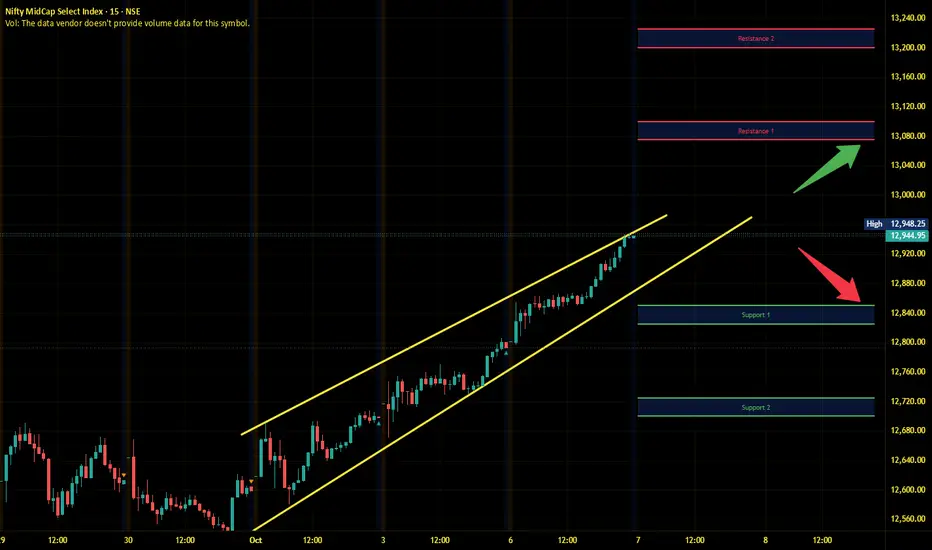 Midnifty has immediate support near 12850 – 12825 range and if this support is broken then index may tank near 12725 – 12700 range.