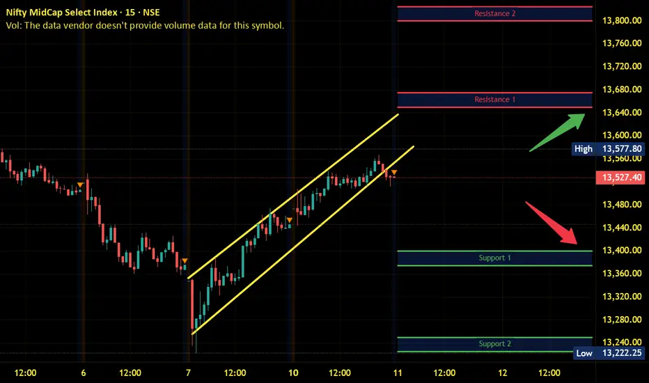Index has immediate resistance near 13625 – 13650 range and if index crosses and sustains above this level then may reach 13800 – 13825 range.