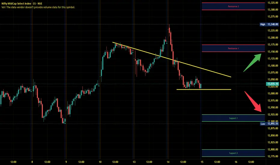 Midnifty has immediate support near 12925 – 12900 range and if this support is broken then index may tank near 12800 – 12775 range.