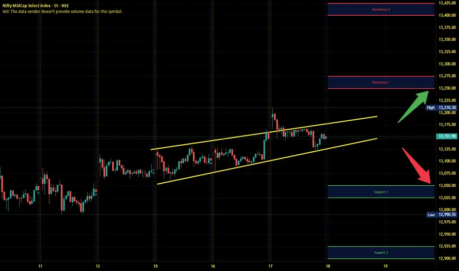 Midnifty has immediate support near 13050 – 13025 range and if this support is broken then index may tank near 12925 – 12900 range.