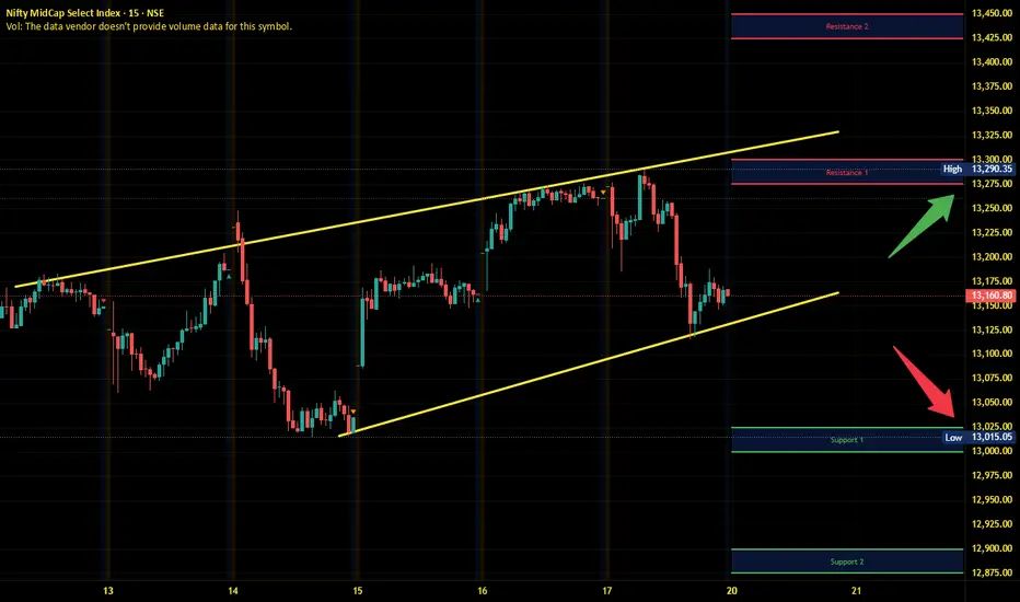 Midnifty has immediate support near 13025 – 13000 range and if this support is broken then index may tank near 12900 – 12875 range.
