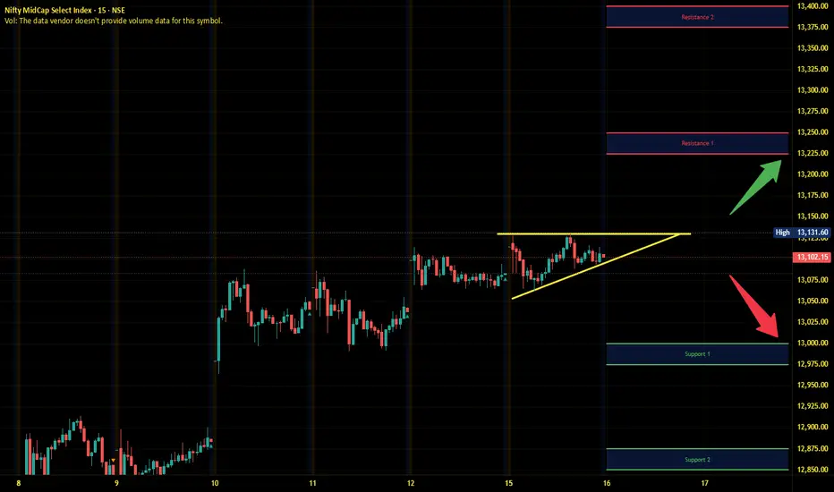 Midnifty has immediate support near 13000 – 12975 range and if this support is broken then index may tank near 12875 – 12850 range.