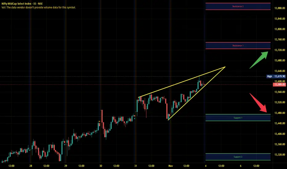 Midnifty has immediate support near 13475 – 13450 range and if this support is broken then index may tank near 13325 – 13200 range.