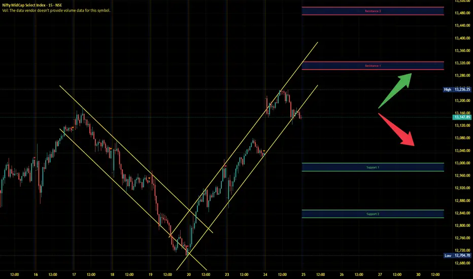 Midnifty has immediate support near 13000 – 12975 range and if this support is broken then index may tank near 12850 – 12825 range.