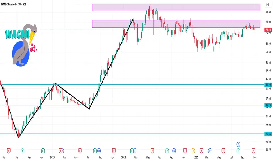 Support: ~₹74 region (short term) → if broken → ~₹69.