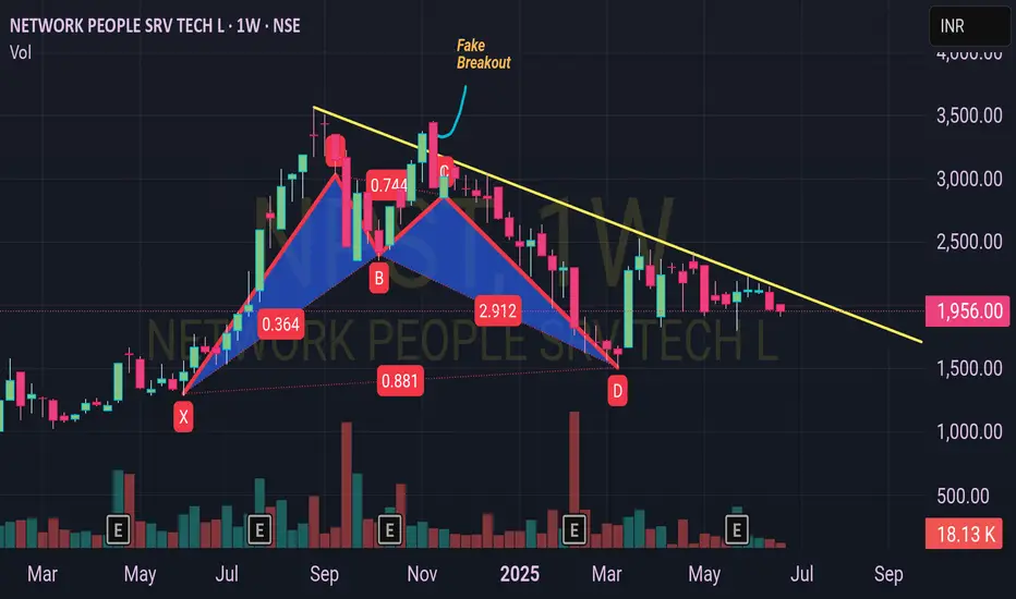 The weekly price chart of Network People Services Technologies Limited (NPST) listed on the National Stock Exchange (NSE) offers an intriguing look at its recent market performance. As of June 25, 2025, the stock has shown a notable rebound, currently trading at INR 1,958.00 with a modest gain of +29.70 (+1.54%) and a trading volume of 18.05K. This resurgence comes after the formation of an "M" pattern, a classic technical analysis formation often associated with a potential reversal following a period of consolidation or decline. The chart, published by stocktechbot on TradingView, highlights this pattern, suggesting that investors may be witnessing a shift in momentum.