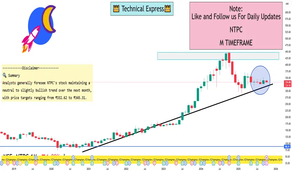 Analysts generally foresee NTPC's stock maintaining a neutral to slightly bullish trend over the next month, with price targets ranging from ₹332.62 to ₹345.31. The consensus suggests potential upside, but the stock may experience fluctuations within this range.