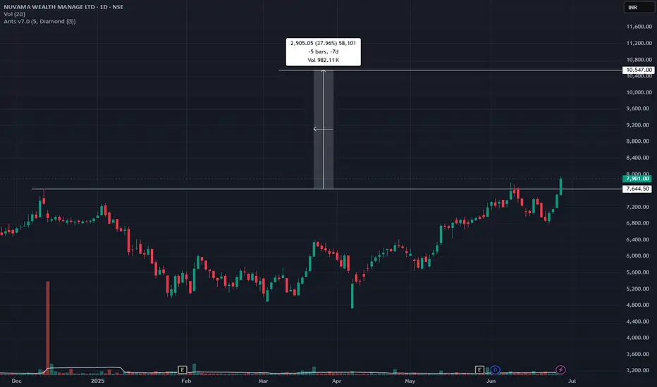 The cup and handle pattern was formed in 2024 december and has now become ripe. 7644 acted as a crucial resistance which was respected few weeks earlier but today it was shattered