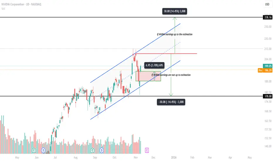 - If NVIDIA earnings are not beat the estimation of market, then the stock price will fall up to $178 over the time from the Resistance line.