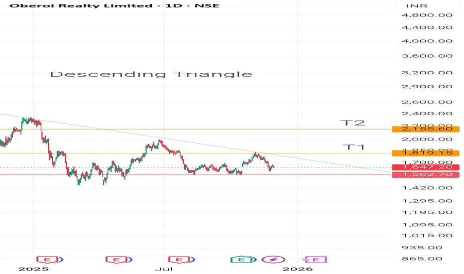 Oberoi Reality is forming a Descending Triangle Pattern and can be a good Swing Trade for two reasons: