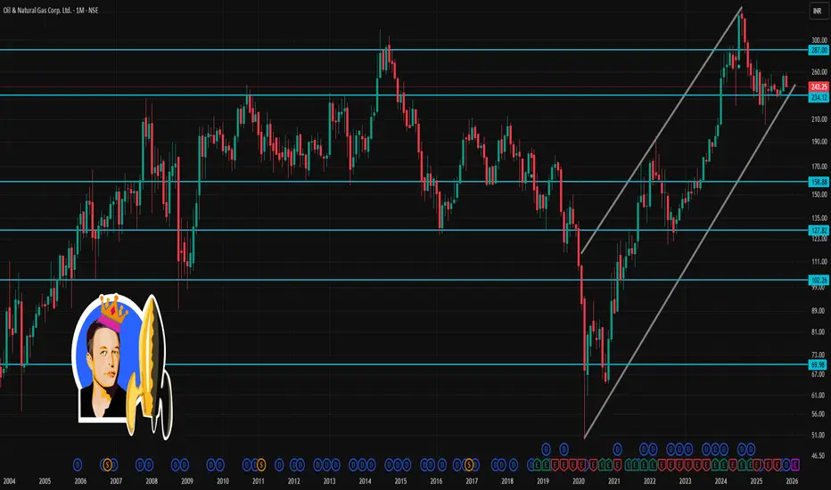 Bearish scenario: If price slips below ₹241 and sentiment (oil prices, global energy demand, investor flows) remains weak — ONGC could test the lower support zone around ₹238–₹240.