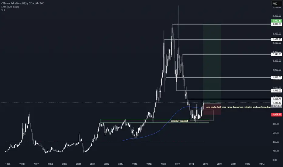the asset has ranged in the monthly time frame for a year and a half. the range was formed on a monthly S/R flip zone. now the range has broken upwards with a retest in lower tf and sustained. position to be held for a year can double.