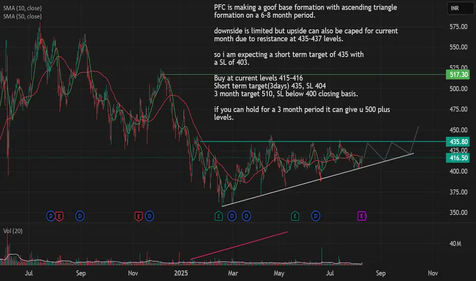 PFC is making a goof base formation with ascending triangle formation on a 6-8 month period.