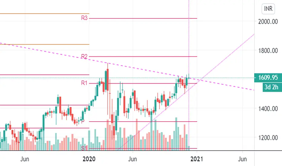 Pidilite is breaking the upper trendline on weekly time frame, one may go long.