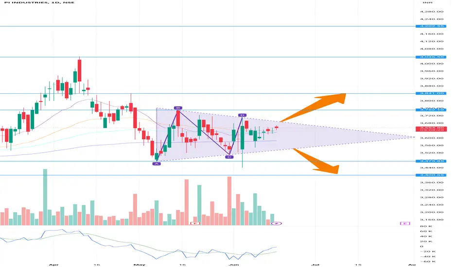 PIIND is trading in symmetrical triangle pattern on daily charts.