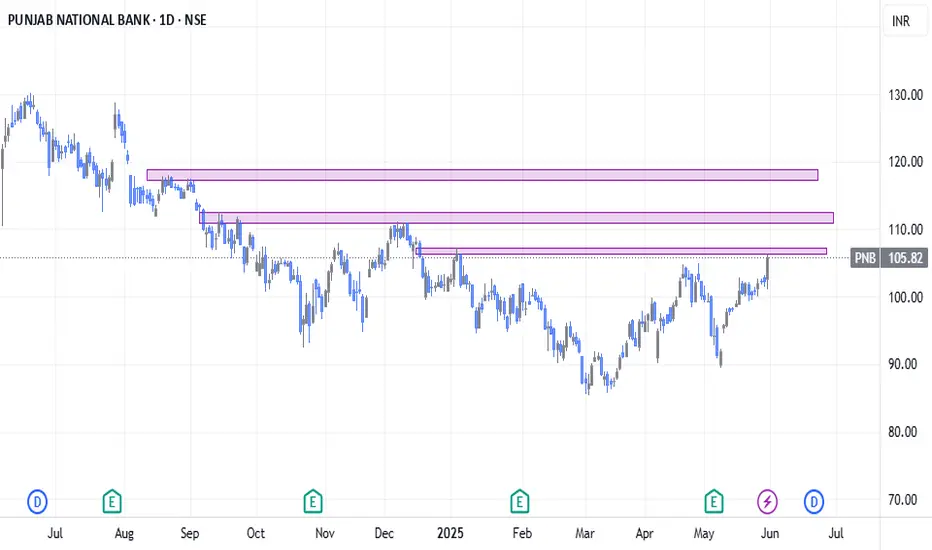 Price is nearing a supply zone. Sustaining above ₹107.40 with volume would indicate strength and continuation.