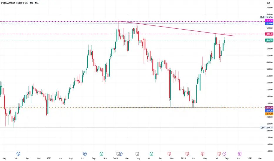 step-by-step technical analysis of Poonawalla Fincorp Ltd (Weekly Chart) the same way: