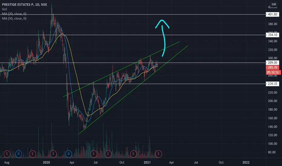 Good company with strong fundamentals, all other stock in realty sectors have performed well, but prestige was on a type of bearish, if it crosses this converging channel it will go up with high bullish momentum. also, good q3 result is ahead, do watch and buy more from this level