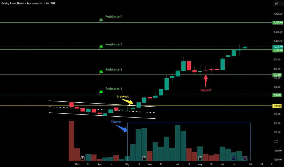Chart is self explanatory. Levels of breakout, possible up-moves (where stock may find resistances) and support (close below which, setup will be invalidated) are clearly defined.