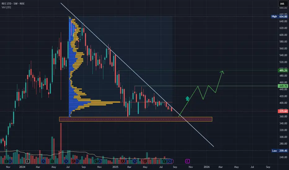 Based on my analysis, the stock may dip to around ₹357 before potentially reversing. However, if it closes above ₹400 with strong volume and sustains that level, it could signal a buying opportunity.