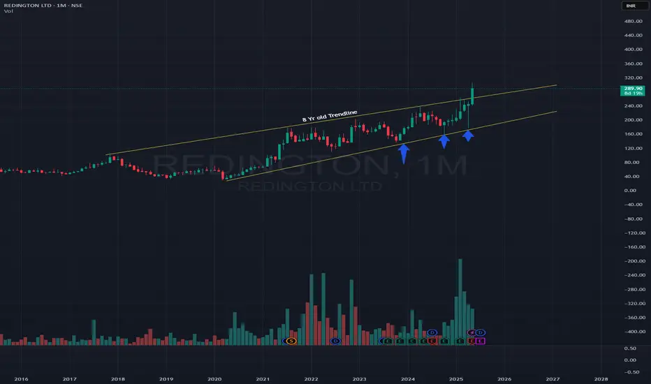 This stock has given a Range breakout from its 8 yr old Trendline in Monthly time frame with Volumes