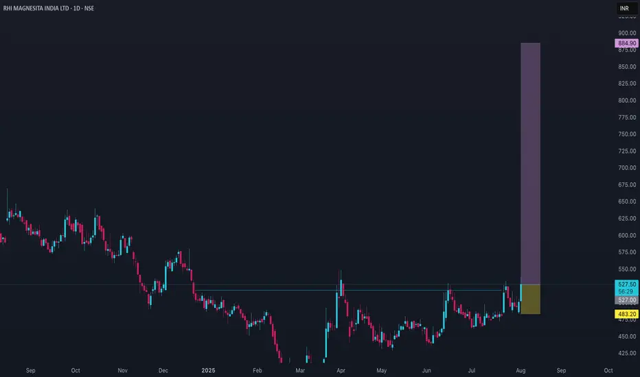 RHI Magnesita India Ltd (RHIM) is trading around ₹529 in early August 2025, having shown notable volatility over the past several months. The stock has ranged between a recent low of about ₹503 and a high near ₹538 in the last few days. The annual performance indicates a mild decline over the last year but double-digit gains in the last three to six months, pointing to a marked recovery from earlier lows.
