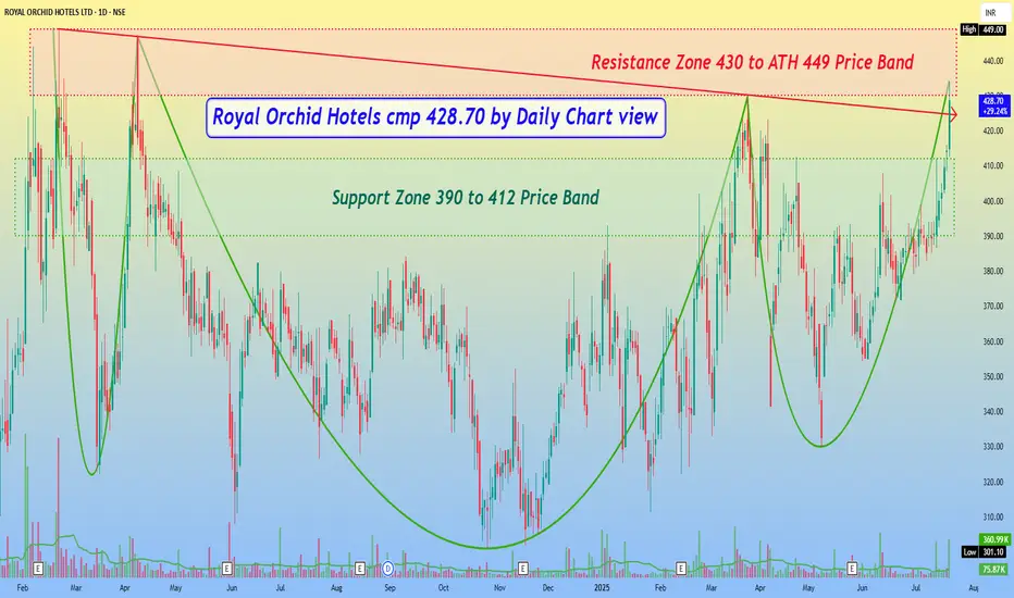Royal Orchid Hotels cmp 428.70 by Daily Chart view