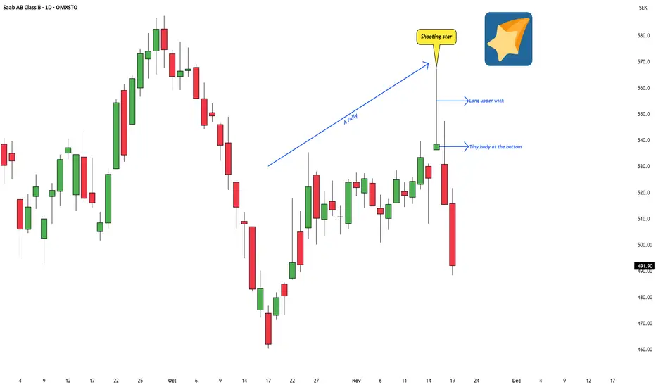I was tracking a Swedish stock recently, and a very clean candlestick pattern popped up — a textbook shooting star.